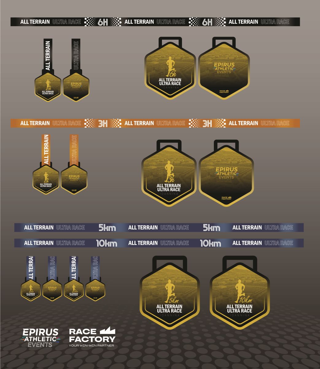 Κάθε αθλητής που θα περάσει τη γραμμή τερματισμού θα κρατά στα χέρια του όχι απλώς ένα μετάλλιο, αλλά μια αναμνηστική επιβράβευση προσπάθειας, επιμονής και προσωπικής νίκης. Το μετάλλιο του All Terrain Ultra Race 2026 έχει σχεδιαστεί με ιδιαίτερη προσοχή στη λεπτομέρεια και αποτελεί μια ξεχωριστή ανταμοιβή για όσους τολμούν να ξεπεράσουν τα όριά τους.