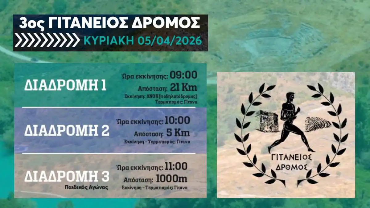 Την Κυριακή 5 Απριλίου 2026 θα πραγματοποιηθεί ο 3ος Γιτάνειος Δρόμος, μια αθλητική και πολιτιστική διοργάνωση για τη Θεσπρωτία, που συνδυάζει τον μαζικό αθλητισμό με την ανάδειξη της ιστορικής κληρονομιάς της περιοχής.