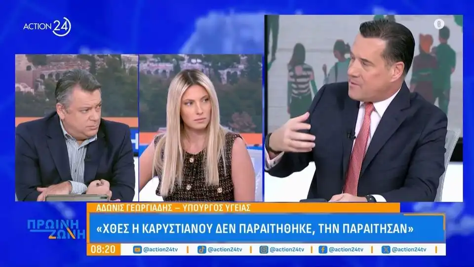 Μιλώντας το πρωί της Τετάρτης στο Action24 ο υπουργός Υγείας ανέφερε με αφορμή τις τελευταίες εξελίξεις ότι «η Μαρία Καρυστιανού δεν παραιτήθηκε» και εξήγησε ότι το διοικητικό συμβούλιο, σε σύνοδο με 6 από τους 7 παρόντες, ψήφισε υπέρ της παραίτησής της. Την έδιωξαν» και συμπλήρωσε με έμφαση ότι «η κυρία Καρυστιανού κατακρίνει πολιτικούς που είναι θεσιθήρες, αλλά η ίδια δεν υπέβαλε παραίτηση».