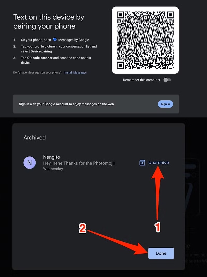 - Μεταβείτε στο Google Messages Web και ακολουθήστε τις οδηγίες που εμφανίζονται στην οθόνη για να αντιστοιχίσετε τις συσκευές κινητού και υπολογιστή σας.