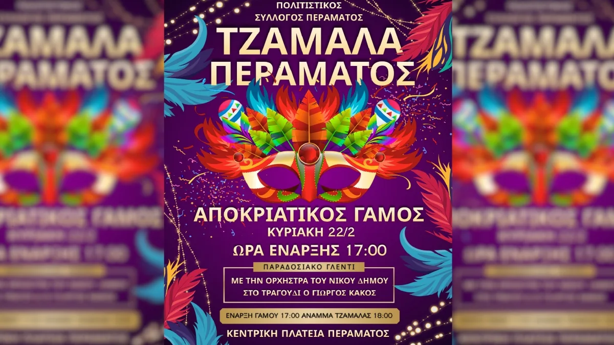 Αποκριάτικη εκδήλωση με αναβίωση παραδοσιακού εθίμου διοργανώνει ο Πολιτιστικός Σύλλογος Περάματος Ιωαννίνων την Κυριακή 22 Φεβρουαρίου 2026, ανήμερα της Κυριακής της Αποκριάς, στην Κεντρική Πλατεία Περάματος.