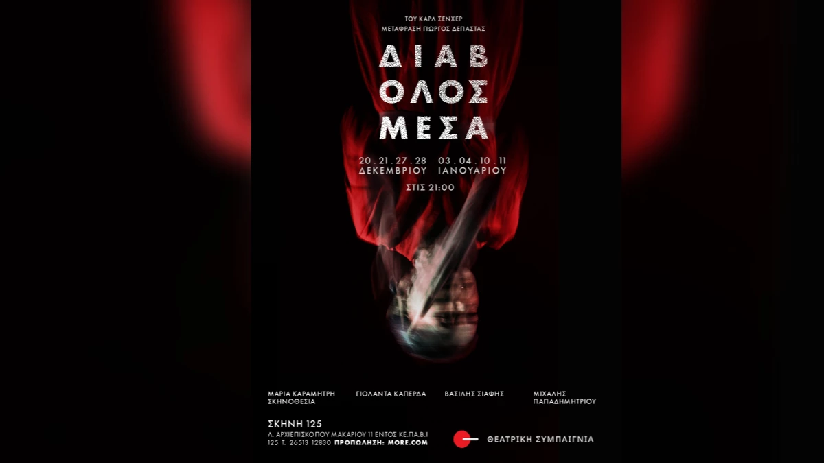 Το «Διάβολος Μέσα» του Καρλ Σένχερ ανεβαίνει σε μια σύγχρονη σκηνοθετική ανάγνωση που μετατρέπει ένα κλασικό έργο σε εφιάλτη σχέσεων, εξουσίας και επιθυμίας.