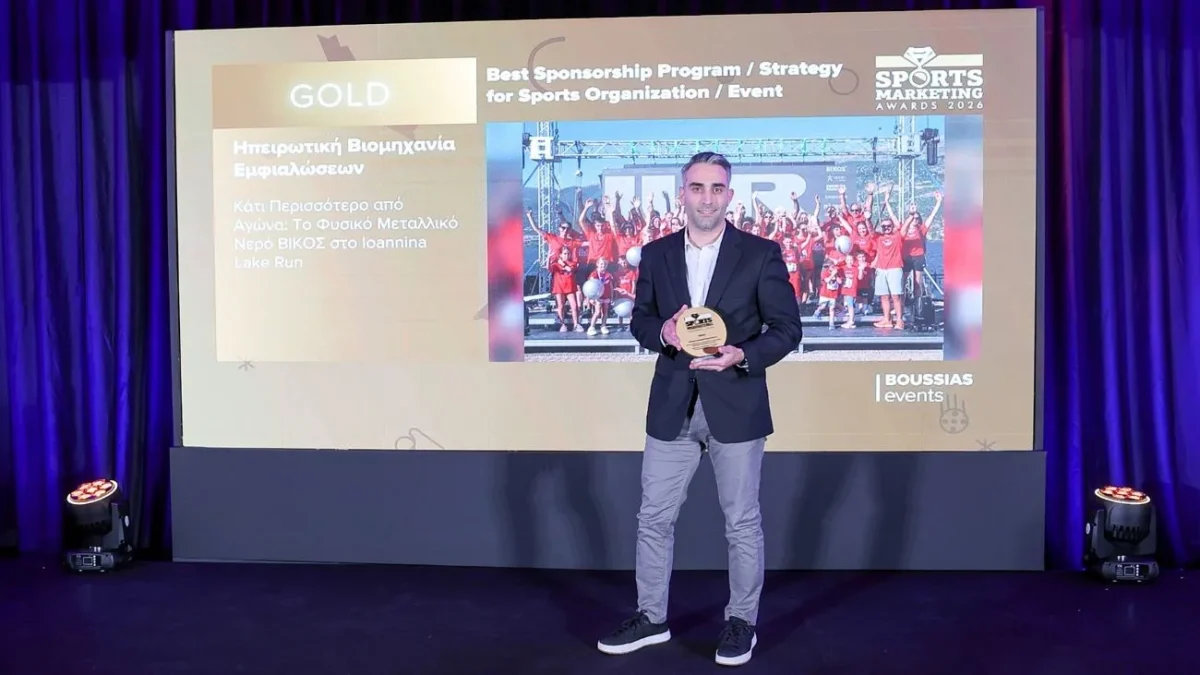 Με δύο χρυσά βραβεία τιμήθηκε το φυσικό μεταλλικό νερό ΒΙΚΟΣ στα Sports Marketing Awards 2026, που διοργανώθηκαν από τη BOUSSIAS Events την Τρίτη 31 Μαρτίου, στο Sofitel Athens Airport.