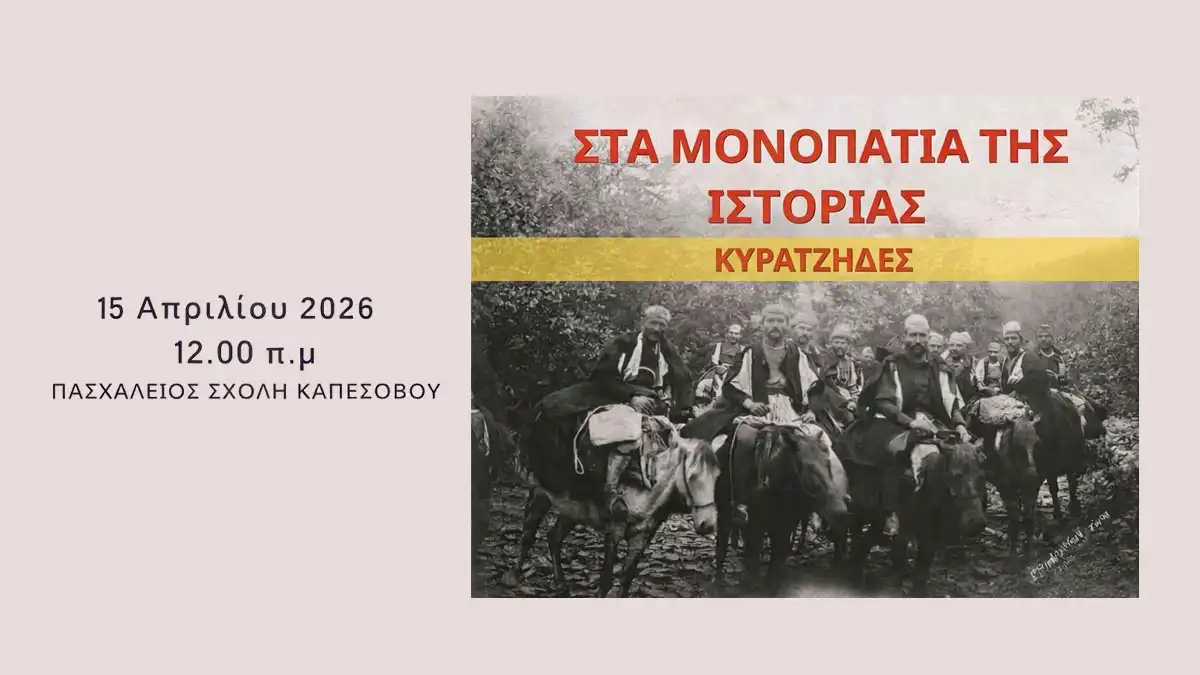 Μια ξεχωριστή εκδήλωση αφιερωμένη στην ιστορία και την πολιτιστική διαδρομή της Ηπείρου θα πραγματοποιηθεί την Τετάρτη 15 Απριλίου 2026, στις 12:00 το μεσημέρι, στην Πασχάλειο Σχολή Καπεσόβου, με τίτλο «Στα μονοπάτια της ιστορίας: Κυρατζήδες».