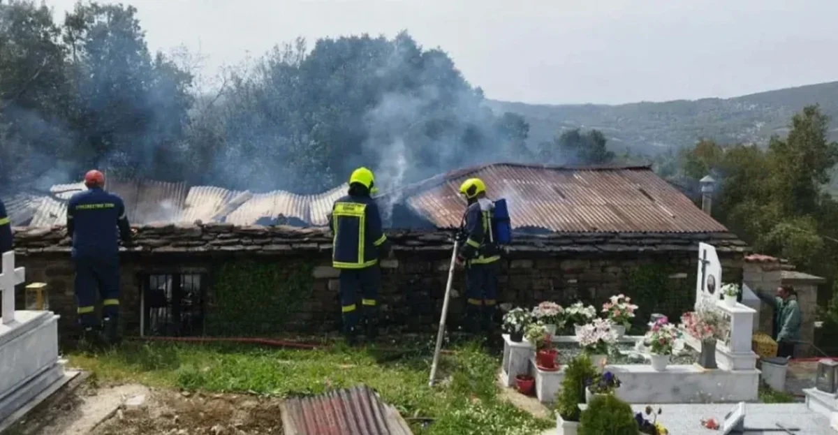 Φωτιά ξέσπασε νωρίτερα σήμερα στο Κοιμητήριο του Ιερού Ναού Παναγίας στο Ελληνικό Ιωαννίνων.