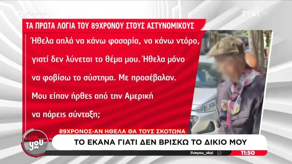 Ο 89χρονος χθες το πρωί, με μια καραμπίνα, τραυμάτισε έναν υπάλληλο του ΕΦΚΑ,ο οποίος παραμένει για νοσηλεία και στην συνέχεια άλλες τέσσερις υπαλλήλους του Πρωτοδικείου.