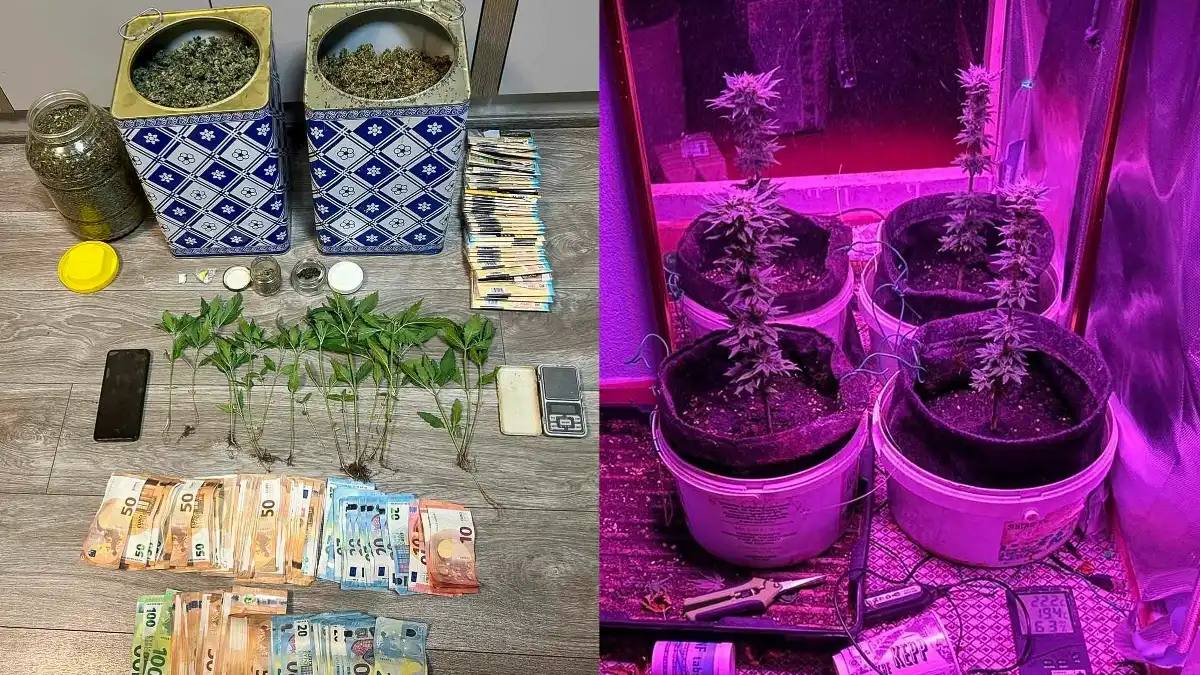 Κατά τις έρευνες που ακολούθησαν στις κατοικίες των συλληφθέντων, εντοπίστηκαν καλλιέργειες κάνναβης τόσο σε εσωτερικό όσο και σε εξωτερικό χώρο. Συνολικά κατασχέθηκαν 22 φυτά κάνναβης ύψους από 10 έως 30 εκατοστά, 1.615 γραμμάρια ακατέργαστης κάνναβης, το χρηματικό ποσό των 8.720 ευρώ, τρία ναρκωτικά χάπια, δύο ηλεκτρονικές ζυγαριές ακριβείας, καθώς και εξοπλισμός για την υποστήριξη καλλιέργειας εσωτερικού χώρου, όπως θερμόμετρο, ανεμιστήρας, θερμαντικός λαμπτήρας και ηλεκτρονικός χρονοδιακόπτης.