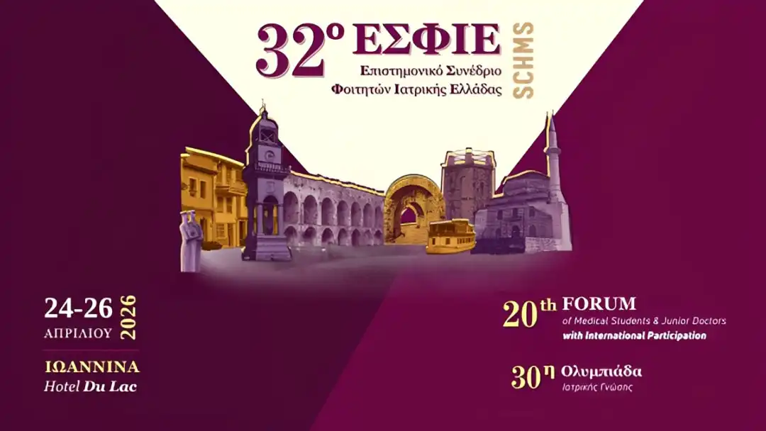 Τα Ιωάννινα ετοιμάζονται να υποδεχθούν τη μεγαλύτερη επιστημονική διοργάνωση που έχει πραγματοποιηθεί ποτέ στην πόλη, με τη διεξαγωγή του 32ου Επιστημονικού Συνεδρίου Φοιτητών/τριών Ιατρικής Ελλάδας (Ε.Σ.Φ.Ι.Ε.) και του 20th Forum of Medical Students & Junior Doctors with International Participation, από τις 24 έως τις 26 Απριλίου 2026.