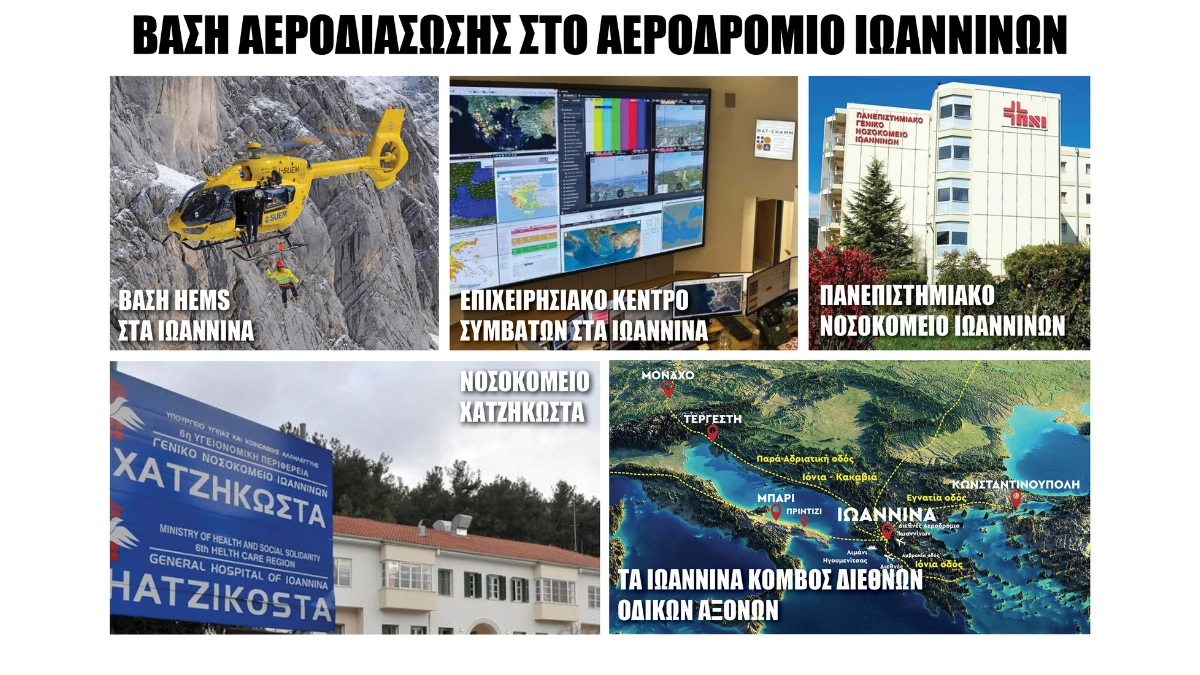 Φορείς και επιχειρηματίες τουρισμού στα Ιωάννινα ζητούν βάση αεροδιάσωσης για γρήγορη επέμβαση σε έκτακτα περιστατικά. Σε ανακοίνωσή τους υπενθυμίζουν ότι η περιοχή έχει αυξημένες ανάγκες λόγω ορεινών όγκων, υψηλού μόνιμου πληθυσμού, αεροδρομίου και μεγάλων νοσοκομείων, και εκφράζουν την ελπίδα ο Υπουργός Κλιματικής Κρίσης και Πολιτικής Προστασίας, Γ. Κεφαλογιάννης να ανακοινώσει θετική εξέλιξη στην επικείμενη επίσκεψή του.