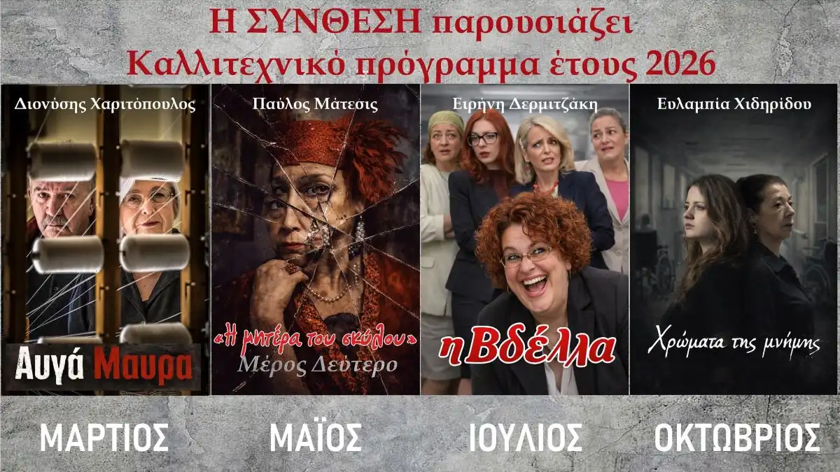 Η Καλλιτεχνική Σκηνή Ηπείρου «ΣΥΝΘΕΣΗ» παρουσιάζει το νέο της καλλιτεχνικό πρόγραμμα για το 2026. Για ακόμη μία χρονιά, ο καλλιτεχνικός προσανατολισμός της ομάδας εστιάζει σε έργα από το ελληνικό ρεπερτόριο που συνομιλούν με τη σύγχρονη πραγματικότητα και έχουν ισχυρό κοινωνικό αποτύπωμα. Στόχος να αναδειχθούν κοινωνικά ζητήματα, ανθρώπινες σχέσεις και υπαρξιακές αναζητήσεις.
