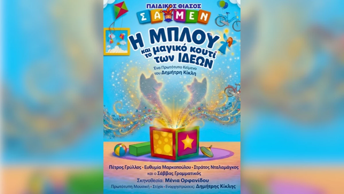 Η παιδική σκηνή ΣΑΜΕΝ, μετά από τις δύο προηγούμενες sold out παραγωγές, παρουσιάζει φέτος το ολοκαίνουργιο θεατρικό έργο του Δημήτρη Κίκλη, ” Η ΜΠΛΟΥ και το μαγικό κουτί των ιδεών”: μια τρυφερή, διαδραστική και ξεκαρδιστική περιπέτεια για παιδιά από 2 έως 102 ετών!