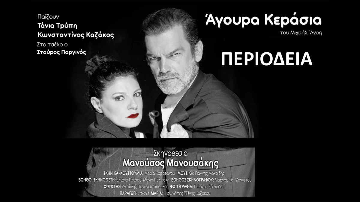 Το έργο «Άγουρα Κεράσια» του Μιχαήλ Άνθη, με πρωταγωνιστές την Τάνια Τρύπη και τον Κωνσταντίνο Καζάκο, έρχεται στην Αίθουσα Σκουφά στην Άρτα την Τρίτη 17 Μαρτίου στις 21:00.