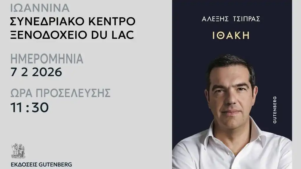 Επόμενος σταθμός της “Ιθάκης” του Αλέξη Τσίπρα είναι τα Ιωάννινα, όπου η παρουσίαση του βιβλίου του πρώην Πρωθυπουργού θα γίνει σήμερα Σάββατο, 7 Φεβρουαρίου στο Συνεδριακό κέντρο του Ξενοδοχείου Du Lac (Κ. Παπούλια & Ίκκου – ώρα προσέλευσης: 11.30 – ώρα έναρξης: 12:00).