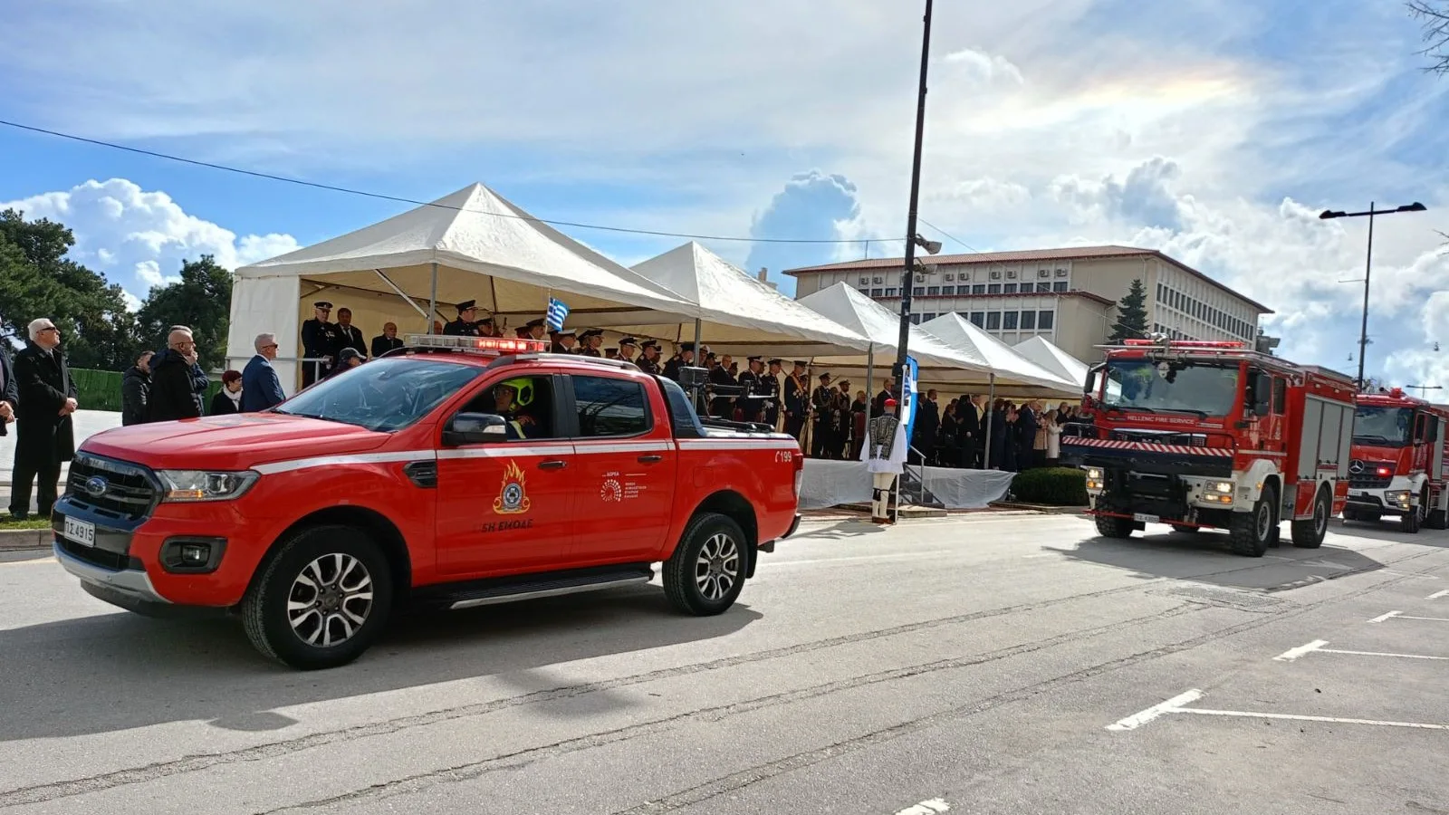 Παρέλασαν επίσης μηχανοκίνητα και πεζοπόρα τμήματα των σωμάτων ασφαλείας, με εξοπλισμό διάσωσης και υπηρεσιακά οχήματα, αναδεικνύοντας τον επιχειρησιακό τους ρόλο.