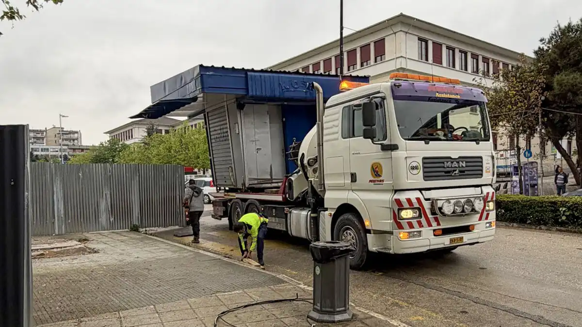 Απομακρύνεται το περίπτερο μπροστά από την “ΟΑΣΗ” στην κεντρική πλατεία των Ιωαννίνων.