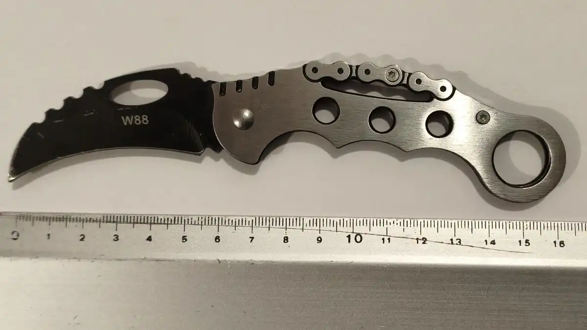 Στη δεύτερη περίπτωση, συνελήφθη σε περιοχή της Θεσπρωτίας από αστυνομικούς της Ο.Π.Κ.Ε. της Υποδιεύθυνσης Δίωξης και Εξιχνίασης Εγκλημάτων Ηγουμενίτσας ημεδαπός, διότι σε έλεγχο που πραγματοποιήθηκε στο αυτοκίνητο που οδηγούσε, βρέθηκε σε ντουλαπάκι και κατασχέθηκε μαχαίρι τύπου «κάραμπιτ», συνολικού μήκους 16 εκατοστών, με μήκος λάμας 6 εκατοστών. Προανάκριση για την υπόθεση ενεργήθηκε από το Αστυνομικό Τμήμα Ηγουμενίτσας.
