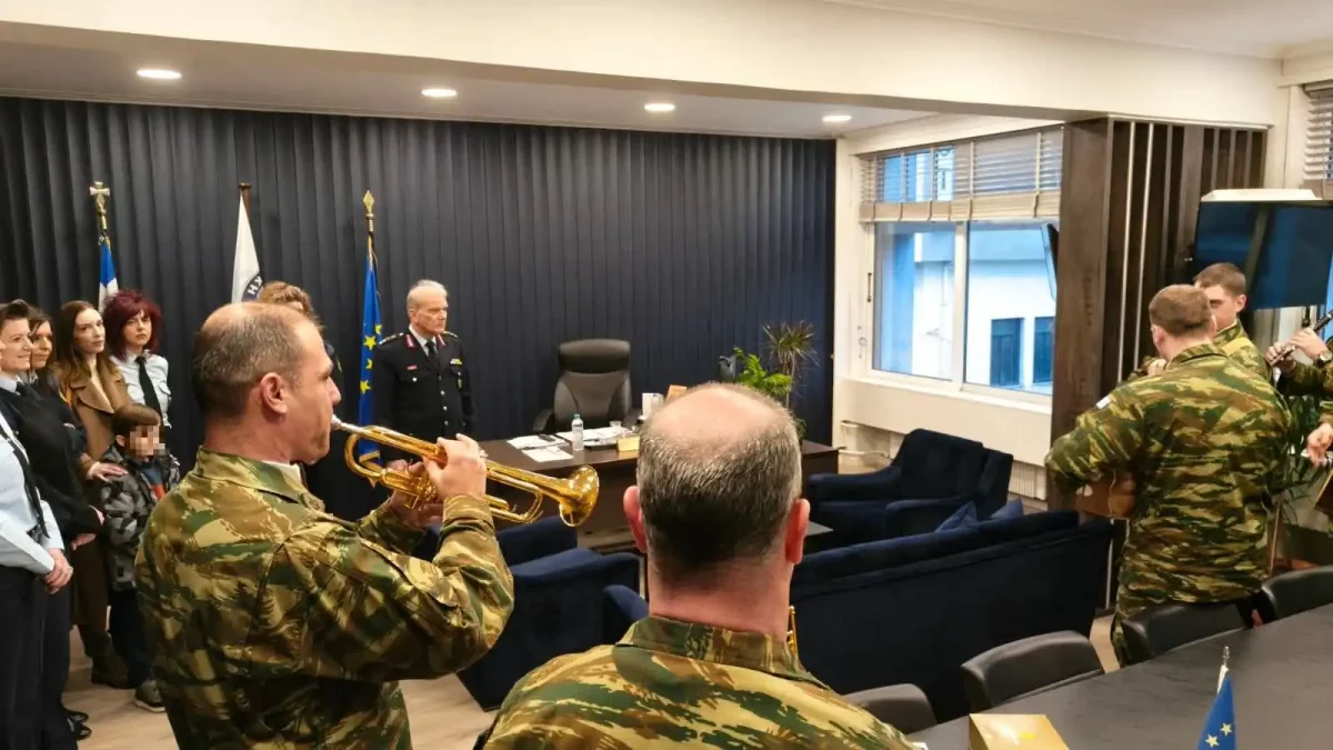 Ο κ. Γενικός υποδέχθηκε με μεγάλη χαρά τη μπάντα της 8ης Μ/Π Ταξιαρχίας Ηπείρου, οι οποίοι έψαλλαν στο αστυνομικό προσωπικό τα χριστουγεννιάτικα Κάλαντα της Ηπείρου.