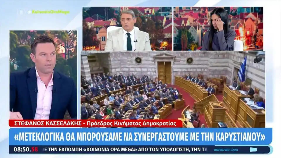 Στην πρωινή εκπομπή του Mega Καλημέρα μίλησε ο Στέφανος Κασσελάκης, αναφερόμενος, μεταξύ άλλων, στη συνταγματική αναθεώρηση, στον πολιτικό προσανατολισμό του Κινήματος Δημοκρατίας, σε ζητήματα κράτους δικαίου, καθώς και σε πρόσφατες εσωκομματικές εξελίξεις.