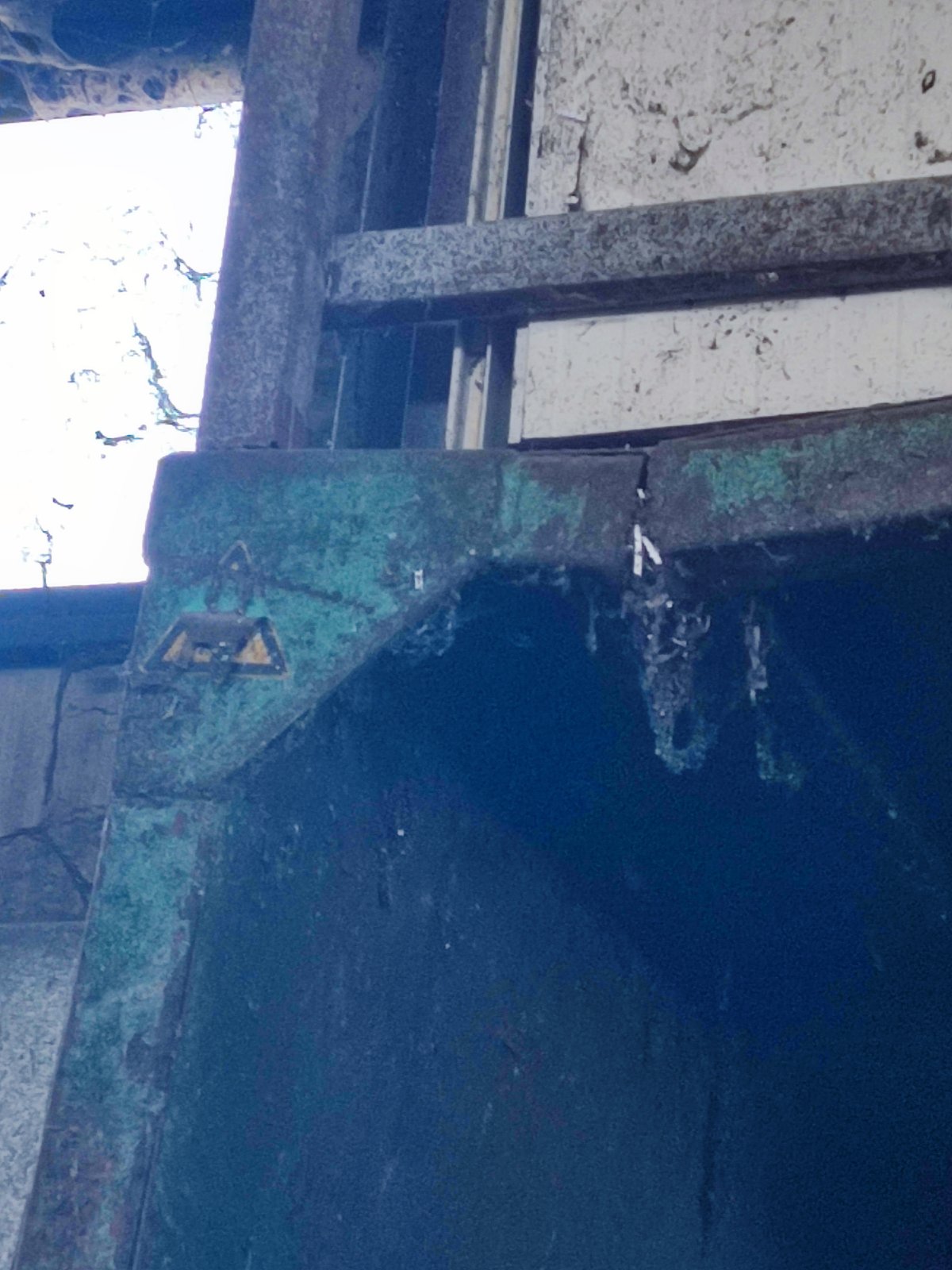 - σάπιες λαμαρίνες, σπασμένοι κοιλοδοκοί όπου πάνω τους δουλεύουν εργάτες, γυμνά καλώδια έξω από τον πίνακα δίπλα στα οποία πέφτουν σίδερα, απουσία πιστοποιητικού ηλεκτρολόγου, δεν υπάρχει συντηρητής,