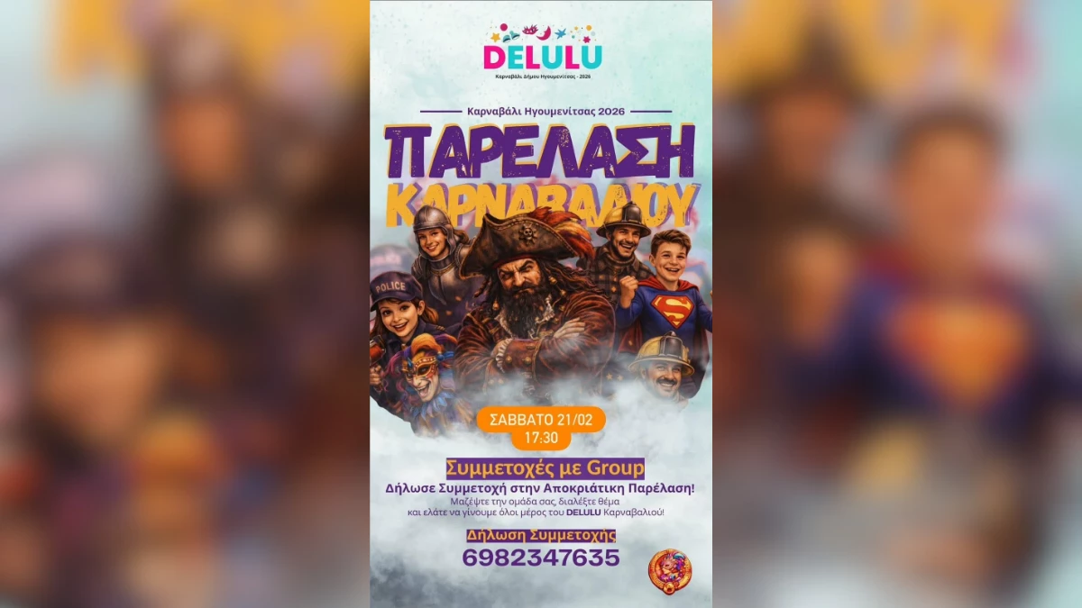 Ο Δήμος Ηγουμενίτσας και η Διεύθυνση Προσχολικής Αγωγής, Παιδείας, Πολιτισμού, Αθλητισμού και Νέας Γενιάς προσκαλούν μικρούς και μεγάλους στη μεγάλη Καρναβαλική Παρέλαση της πόλης, το Σάββατο 21 Φεβρουαρίου 2026. Η παρέλαση ξεκινά στις 17:30 από το ύψος της Eurobank και καταλήγει απέναντι από την καφετέρια Dali, γεμίζοντας την παραλιακή οδό Εθνικής Αντιστάσεως με ρυθμό, χρώμα και κέφι.