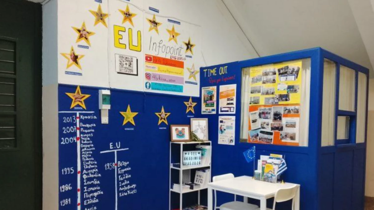 Οι «Junior Ambassadors» του σχολείου υποδέχθηκαν τον Επικεφαλής του Europe Direct Ηπείρου, κ. Δημήτριο Γκόλα, σε μια εκδήλωση που συνέδεσε τη γνώση με τη βιωματική μάθηση και την ευρωπαϊκή προοπτική. Η δράση ξεκίνησε στο «EU Infopoint», έναν πρότυπο χώρο ευρωπαϊκής πληροφόρησης που δημιούργησαν οι ίδιοι οι μαθητές, όπου σε εορταστικό κλίμα πραγματοποιήθηκε και η κοπή της βασιλόπιτας της ομάδας EPAS, ενισχύοντας το πνεύμα συνεργασίας και συμμετοχής.