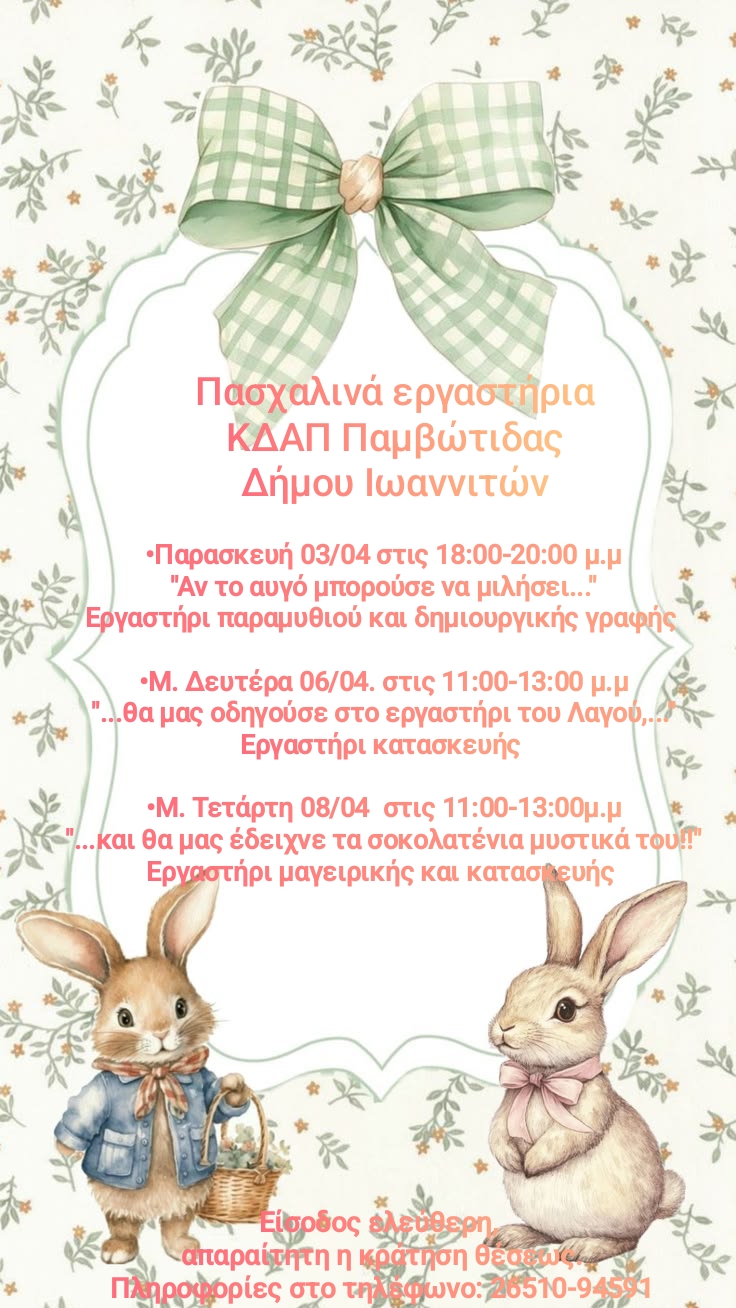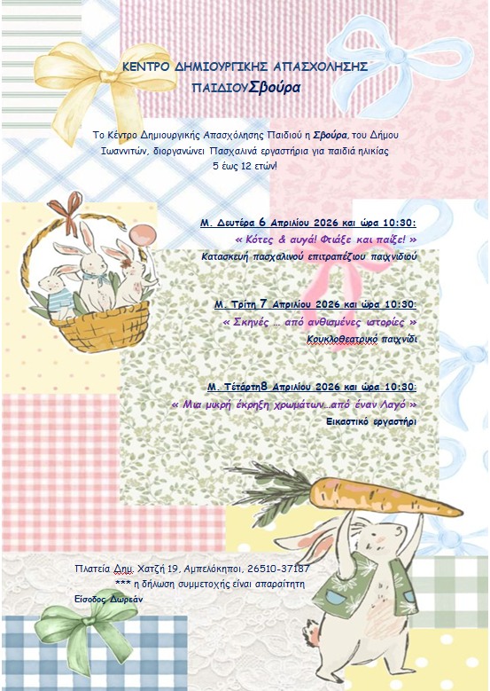 Με ένα πλούσιο πρόγραμμα δημιουργικών δράσεων υποδέχονται το Πάσχα τα ΚΔΑΠ του Δήμου Ιωαννιτών, προσφέροντας στα παιδιά ευκαιρίες για δημιουργική απασχόληση και ψυχαγωγία.