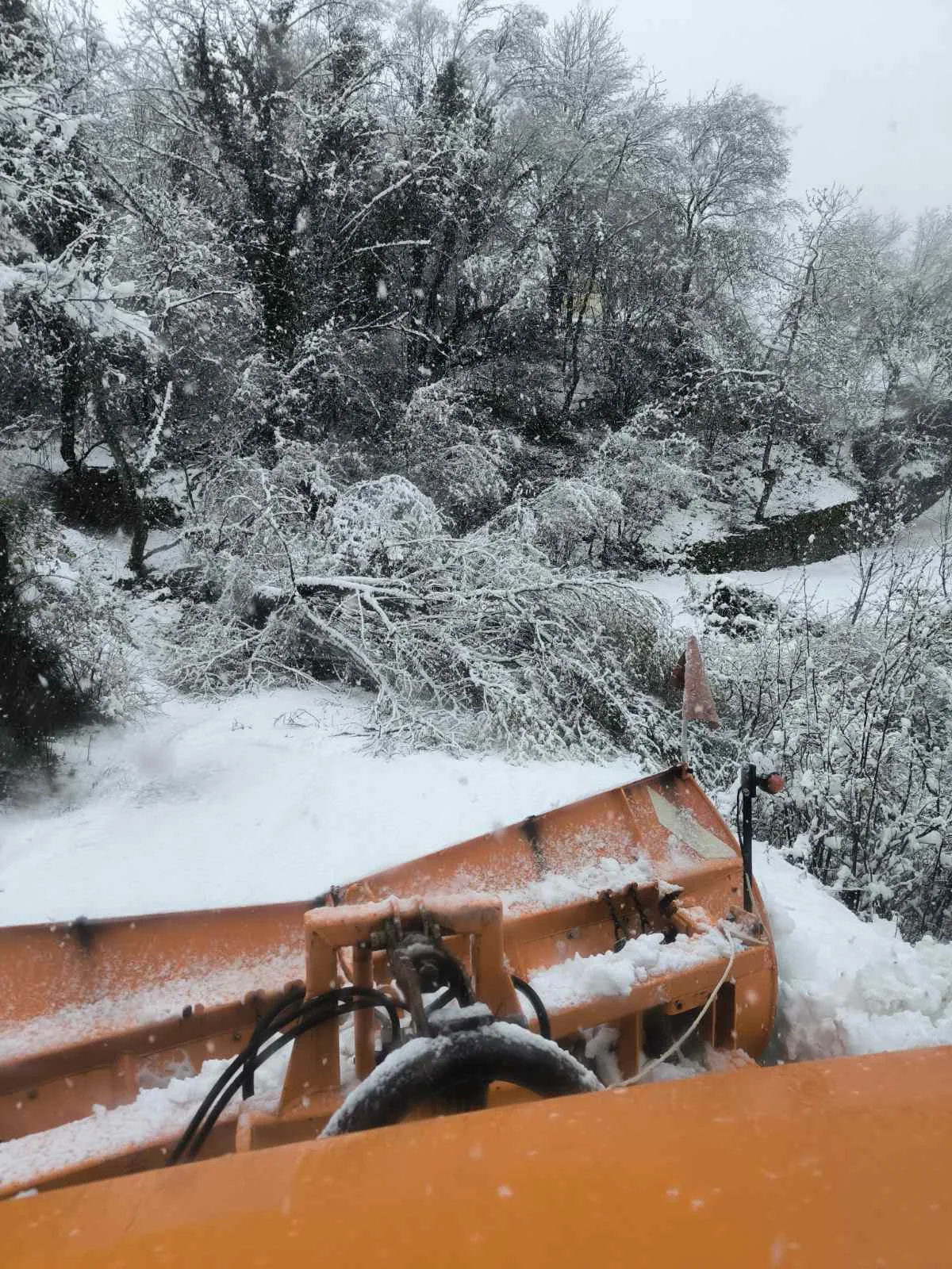 Ιδιαίτερη έμφαση δίνεται στην απομάκρυνση πεσμένων δέντρων από το οδικό δίκτυο, τα οποία προκλήθηκαν από τους ισχυρούς ανέμους και το βάρος του χιονιού, με στόχο τη διασφάλιση της ασφαλούς διέλευσης των οχημάτων.