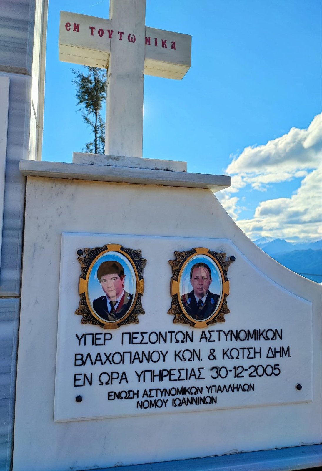 Φωτογραφία από το μνημείο που έχει στηθεί στον τόπο θανάτου των δύο αστυνομικών