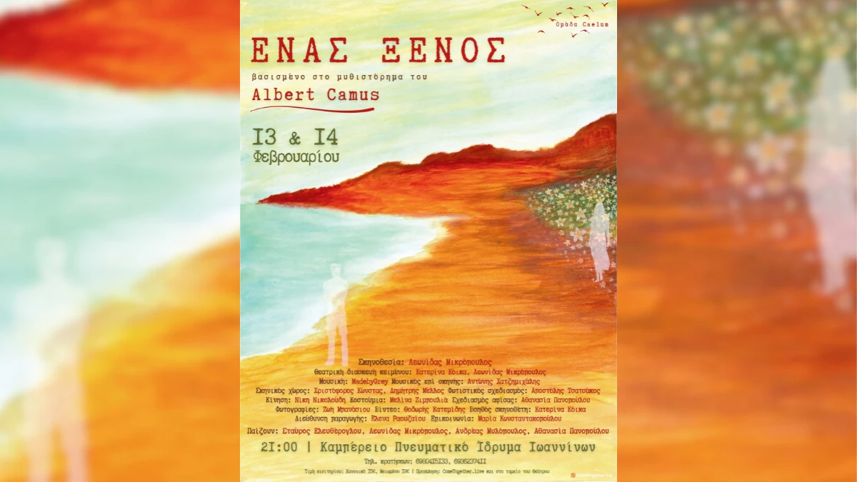 Με μια αφηγηματική απόδοση του Ξένου του Αλμπέρ Καμύ με πρωτότυπη ζωντανή μουσική η Ομάδα Caelum έρχεται στο Καμπέρειο Θέατρο στις 13 και 14 Φεβρουαρίου.