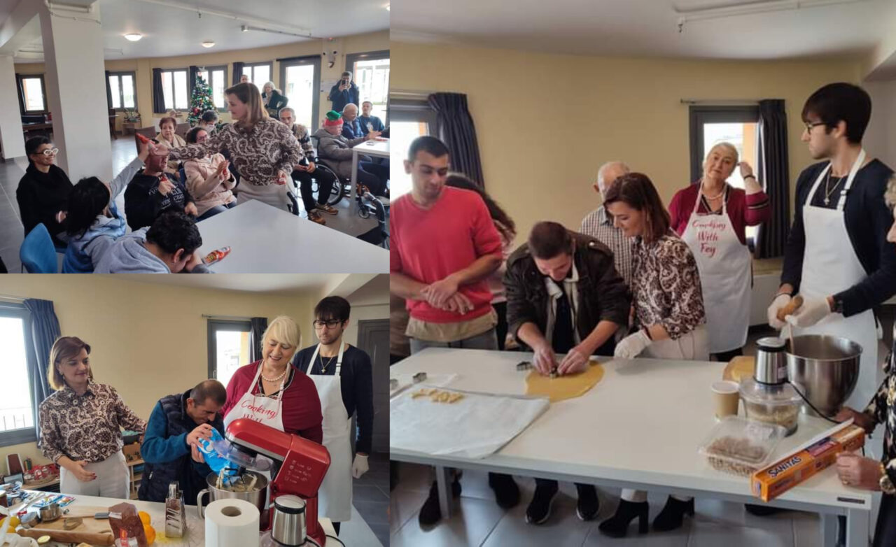 Η κα Κεφάλα οργάνωσε μια πεντανόστιμη δράση φροντίζοντας να γλυκάνει με μπισκοτάκια και κουραμπιέδες δια χειρός της κας Γιτσα Φωτεινής και του γιου της κου Απόστολου Κύρκου από το Cooking with chef Fey,με βοηθούς ποιος άλλους, φυσικά τους ωφελούμενους , οι οποίοι συμμετείχαν ενεργά στα μαγειρέματα…και το κατα-ευχαριστήθηκαν.