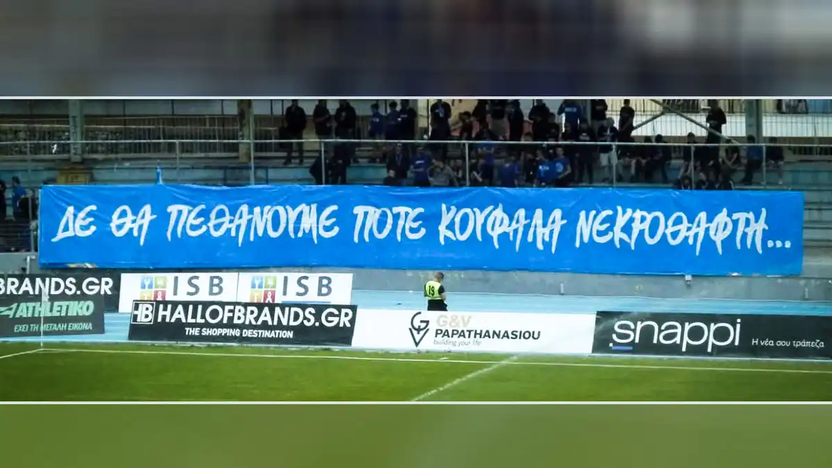 Ξεχωριστή θέση είχαν δύο πανό που εμφανίστηκαν σε διαφορετικά χρονικά σημεία της αναμέτρησης.