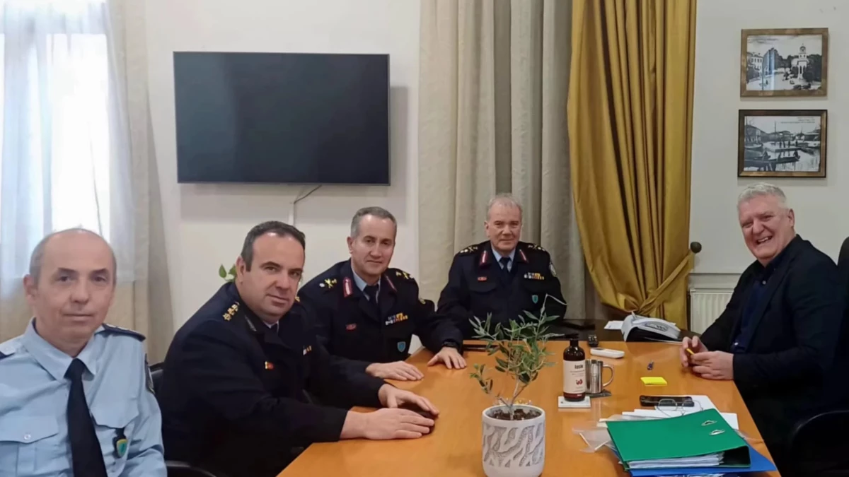Ο Γραμματέας της Αποκεντρωμένης Διοίκησης Ηπείρου-Δυτικής Μακεδονίας Δρ Ιωάννης Σάββας υποδέχθηκε σήμερα Πέμπτη 19-2-2026 στο γραφείο του στα Ιωάννινα τον Γενικό Αστυνομικό Διευθυντή Ηπείρου Υποστράτηγο Κωνσταντίνο Κακούση, ο οποίος συνοδευόταν από τον Αστυνομικό Διευθυντή Ιωαννίνων Βασίλη Λαγό, τον Αστυνομικό Διευθυντή Θεσπρωτίας Θεόδωρο Κολιοπάνο και τον Προϊστάμενο του Τμήματος Ελέγχου Διαβατηρίων Σαγιάδας Ιωάννη Κατσούλα.