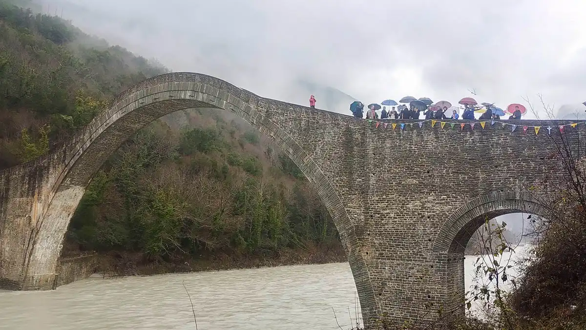 Η τελετή του Αγιασμού των Υδάτων συγκέντρωσε πλήθος πιστών από την ευρύτερη περιοχή των Τζουμέρκων, οι οποίοι βρέθηκαν στο σημείο για να τιμήσουν τη μεγάλη γιορτή της Ορθοδοξίας σε ένα από τα πιο εμβληματικά μνημεία της Ηπείρου.