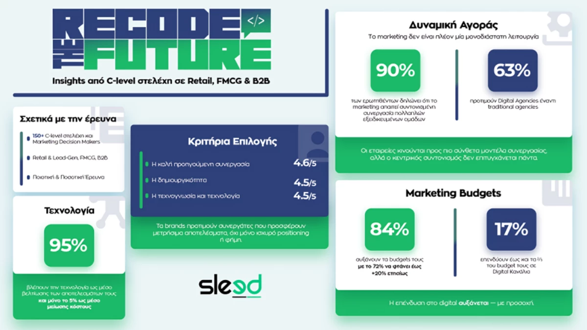 Η Sleed παρουσιάζει τα αποτελέσματα της Έρευνας “Recode The Future”, που καταγράφει πώς τα C-level στελέχη ελληνικών επιχειρήσεων αντιλαμβάνονται το Digital Transformation στην εποχή της τεχνητής νοημοσύνης.
