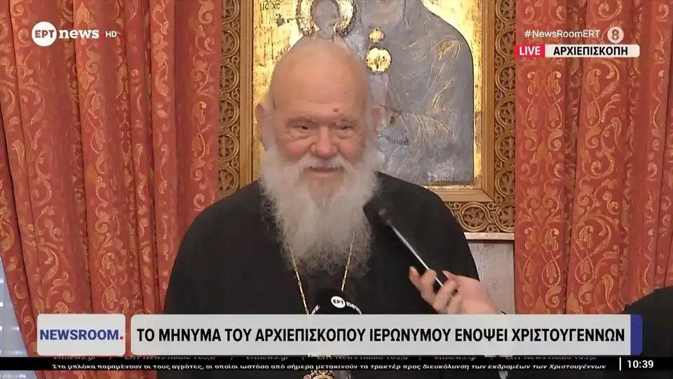 Το μήνυμα του Αρχιεπισκόπου Ιερώνυμου ενόψει Χριστουγέννων (βίντεο) Δεκ 23, 2025 | ΕΛΛΑΔΑ Το μήνυμα του Αρχιεπισκόπου Ιερώνυμου ενόψει Χριστουγέννων Αρχιεπίσκοπος Ιερώνυμος