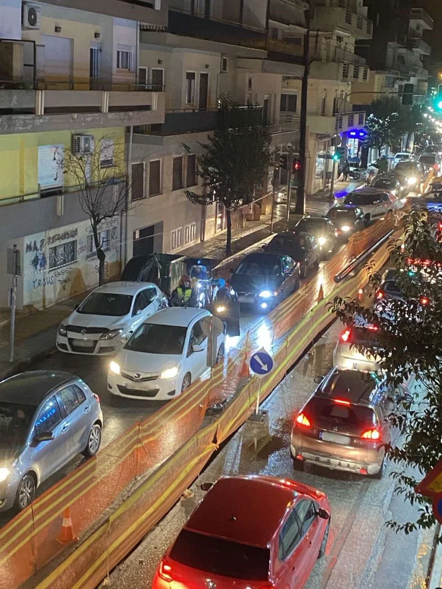 Η κίνηση διεξάγεται με χαμηλές ταχύτητες, ενώ σε ώρες αιχμής σχηματίζονται ουρές οχημάτων που επεκτείνονται σε γειτονικές διασταυρώσεις, δημιουργώντας γενικευμένη επιβάρυνση στην ευρύτερη περιοχή.