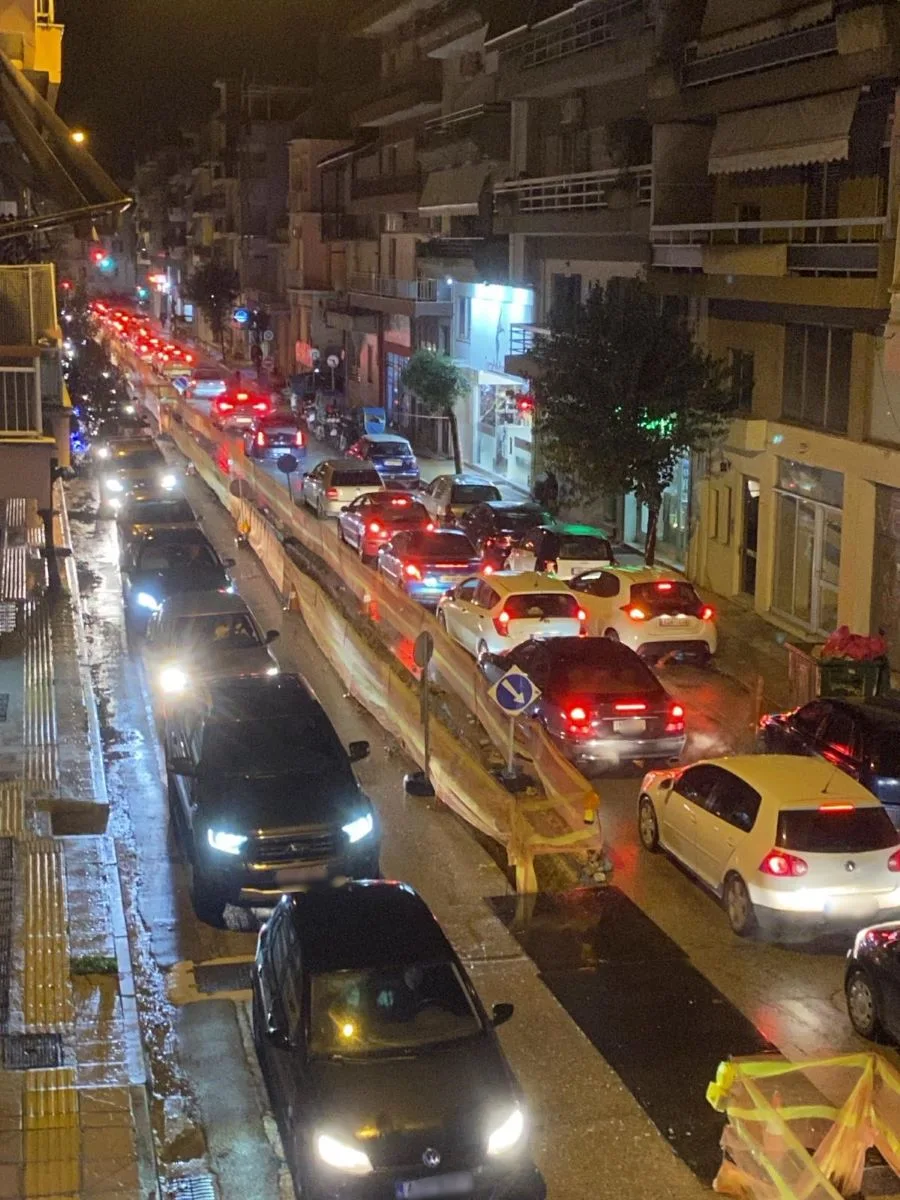 Η κίνηση διεξάγεται με χαμηλές ταχύτητες, ενώ σε ώρες αιχμής σχηματίζονται ουρές οχημάτων που επεκτείνονται σε γειτονικές διασταυρώσεις, δημιουργώντας γενικευμένη επιβάρυνση στην ευρύτερη περιοχή.