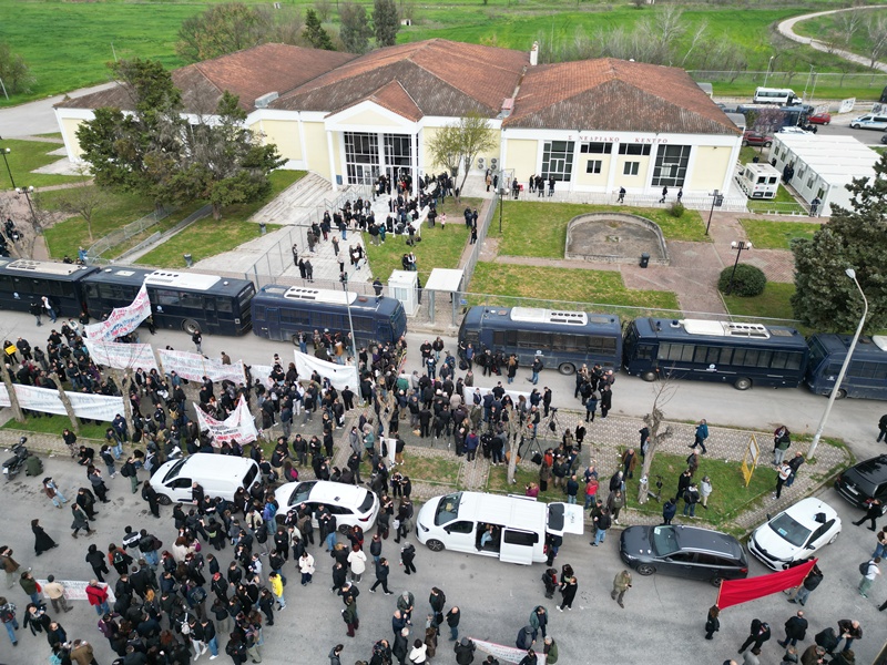 Στο σημείο βρίσκονται ισχυρές αστυνομικές δυνάμεις. Τουλάχιστον τρεις διμοιρίες έχουν σταθμεύσει κοντά στο Συνεδριακό Κέντρο όπου θα διεξαχθεί η δίκη, ενώ πολυάριθμη είναι και η παρουσία εκπροσώπων των μέσων ενημέρωσης.  Στο μεταξύ, κόσμος συγκεντρώνεται από το πρωί στον χώρο του ΓΑΙΟΠΟΛΙΣ στη Λάρισα συμμετέχοντας σε συγκέντρωση διαμαρτυρίας.