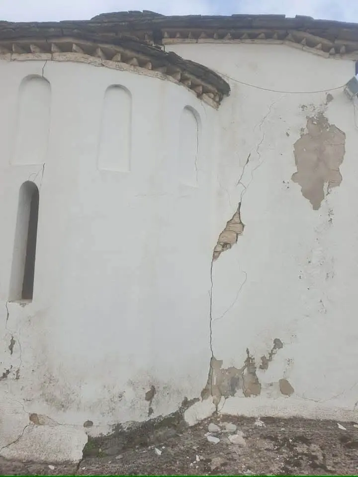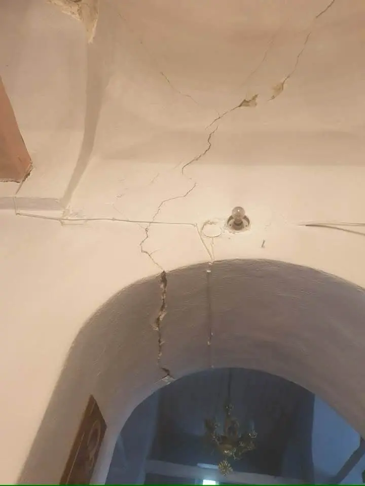 Σύμφωνα με τις πρώτες πληροφορίες, ο σεισμός προκάλεσε ρωγμές στους τοίχους του ναού, αποκολλήσεις σοβάδων.